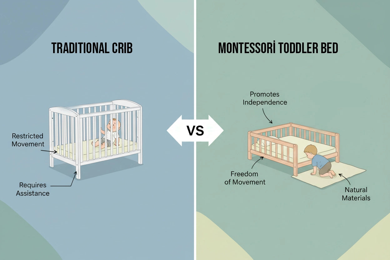 Hug Nova Montessori Toddler Bed | Solid Wood Floor Bed with High Railings and Gate