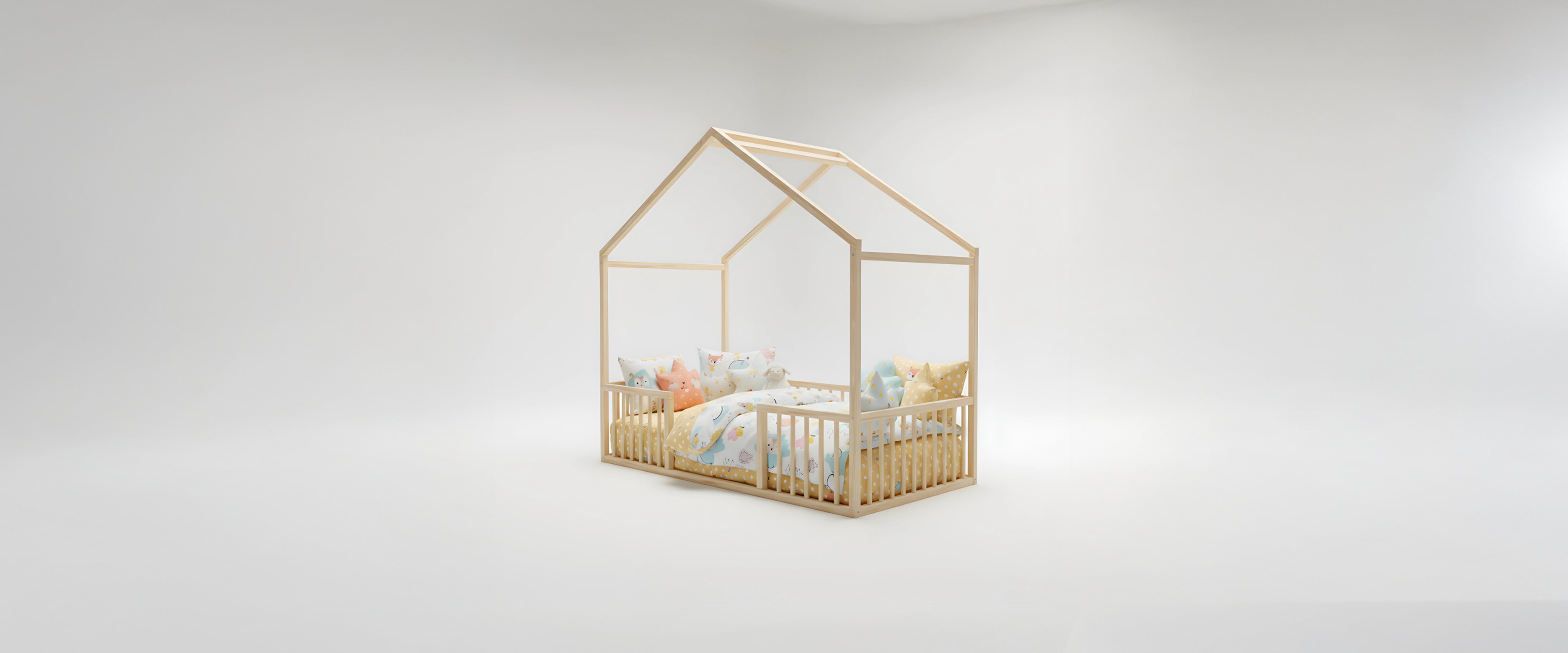 Hug Atlas Montessori Toddler Bed | Solid Wood Montessori House-Shaped Bed with Railings and Gate