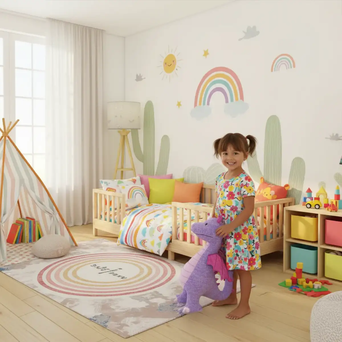 Hug Zenith Montessori Toddler Bed | Montessori Playpen Floor Bed with Cylindirical Railings and Gate