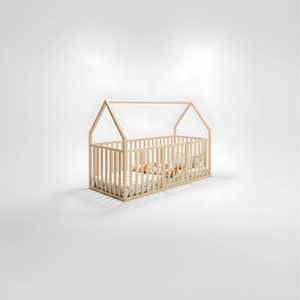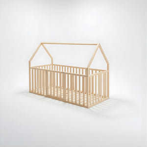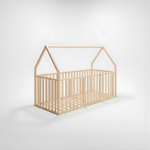 Hug Atlas Montessori Toddler Bed | Solid Wood Montessori House-Shaped Bed with Railings and Gate