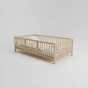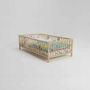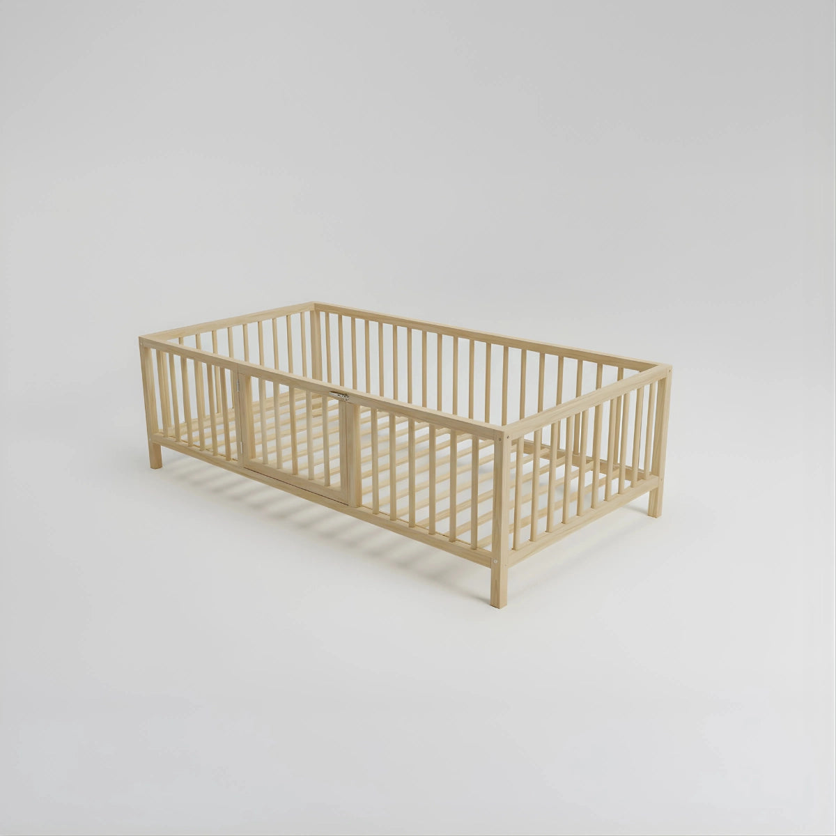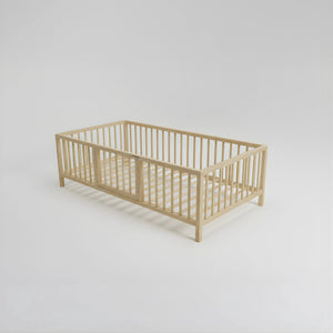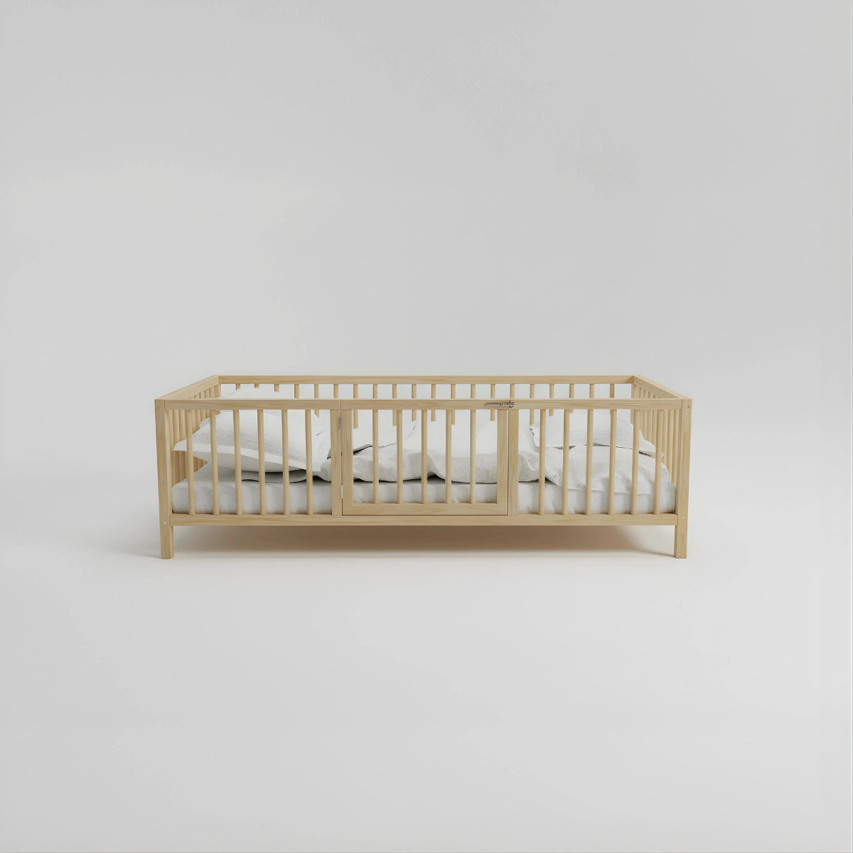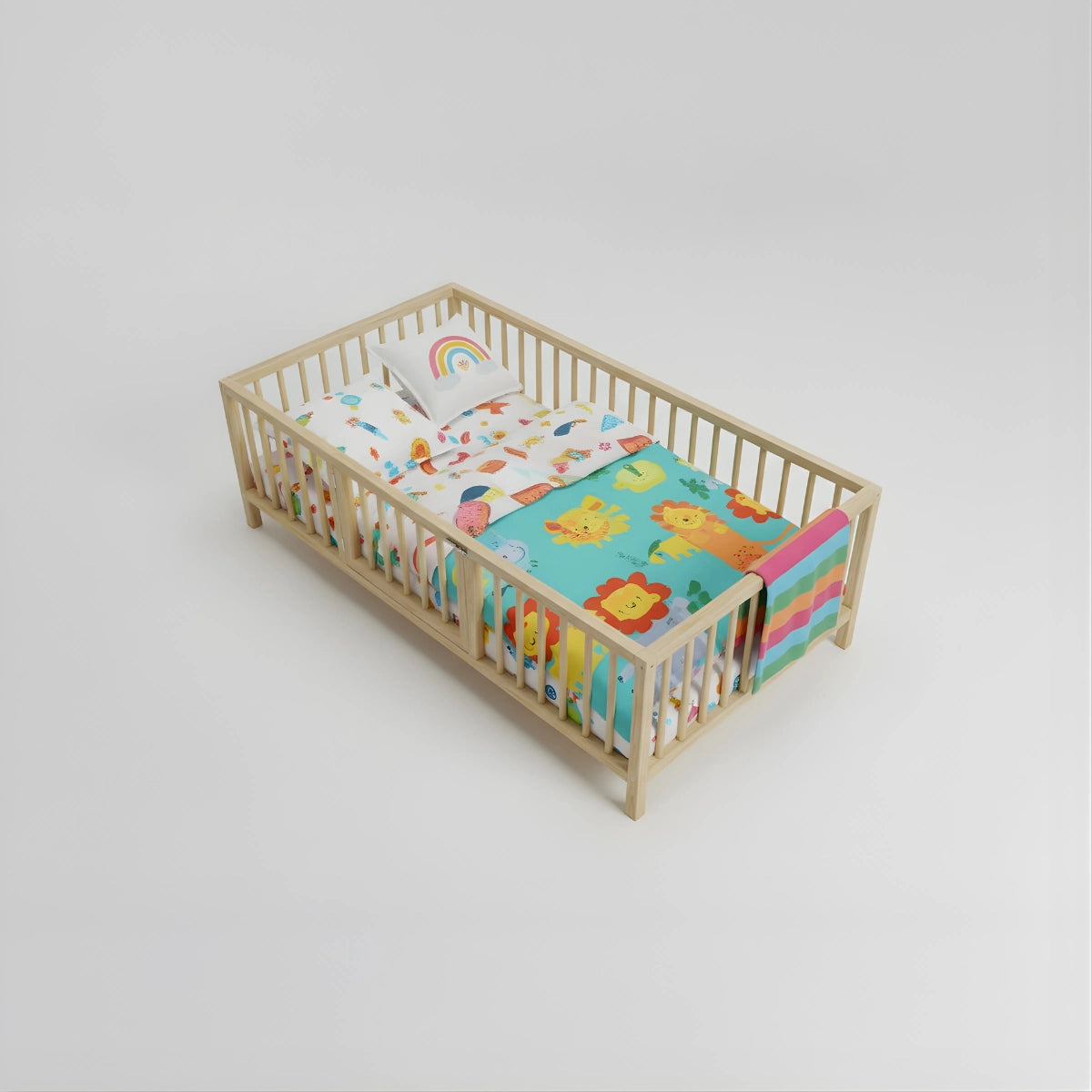Hug Cove Montessori Toddler Bed | Natural Solid Pine Wood Floor Bed with Rails and Gate