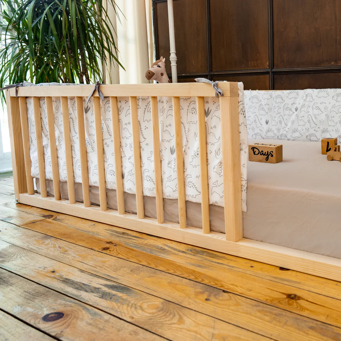 Easy to assemble and maintain, this untreated pine wood Montessori children's bed serves as an ideal centerpiece for a nurturing and development-focused bedroom, promoting a connection with the natural world and encouraging exploration and creativity for your child's growth and development.