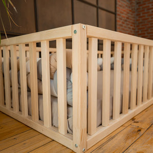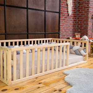 This wholesome Montessori children's bed is meticulously crafted from natural, untreated pine wood, providing a raw and organic sleeping environment for your child's formative years. Following the Montessori principles, this bed is designed to be close to the ground, encouraging independence and freedom of movement for your little one.