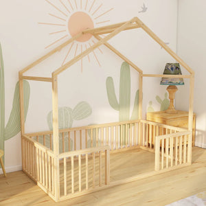 Giza - Montessori Playhouse Floor Bed with Cylindrical Railings