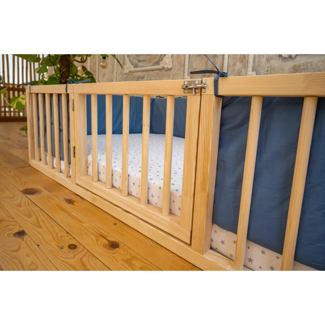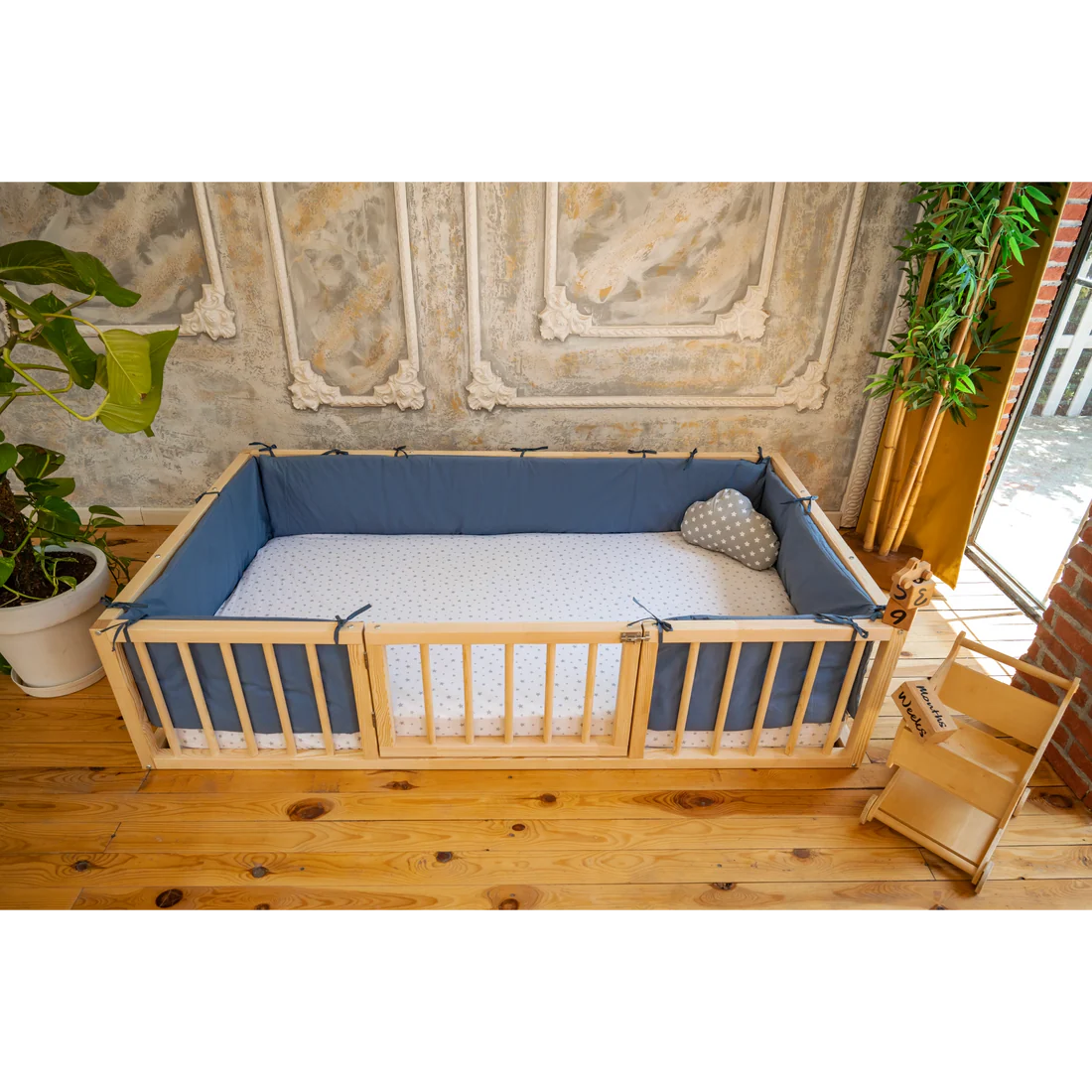Marvion - Montessori Playpen Floor Bed with Cylindrical Railings and Gate